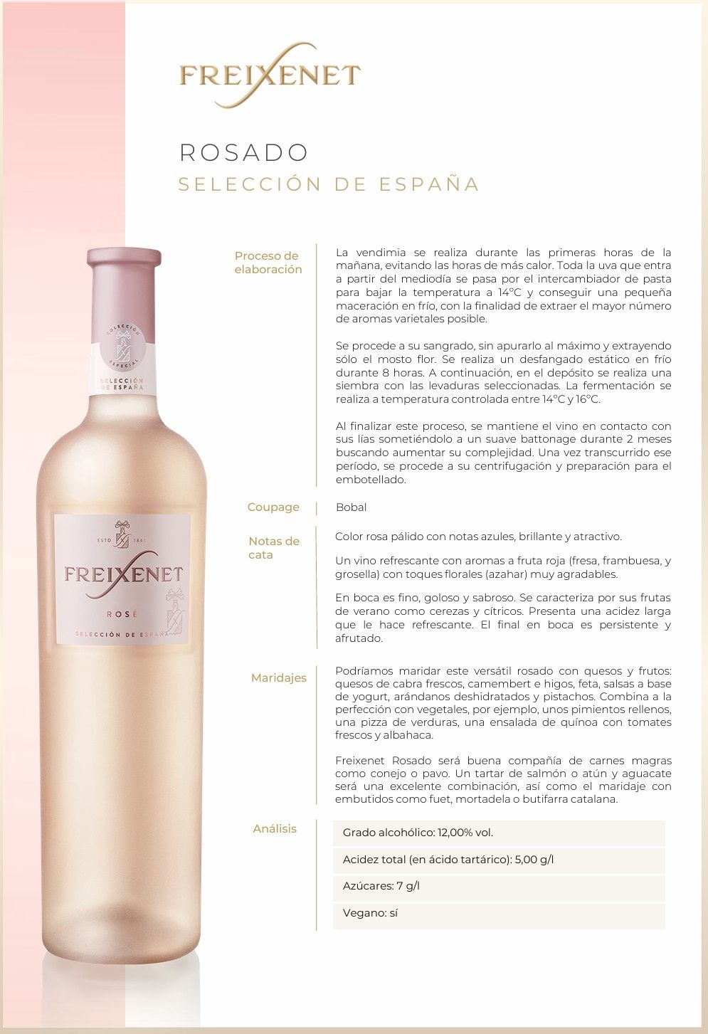 Especificaciones para Vino Freixenet Rose 12° 750cc (2024)