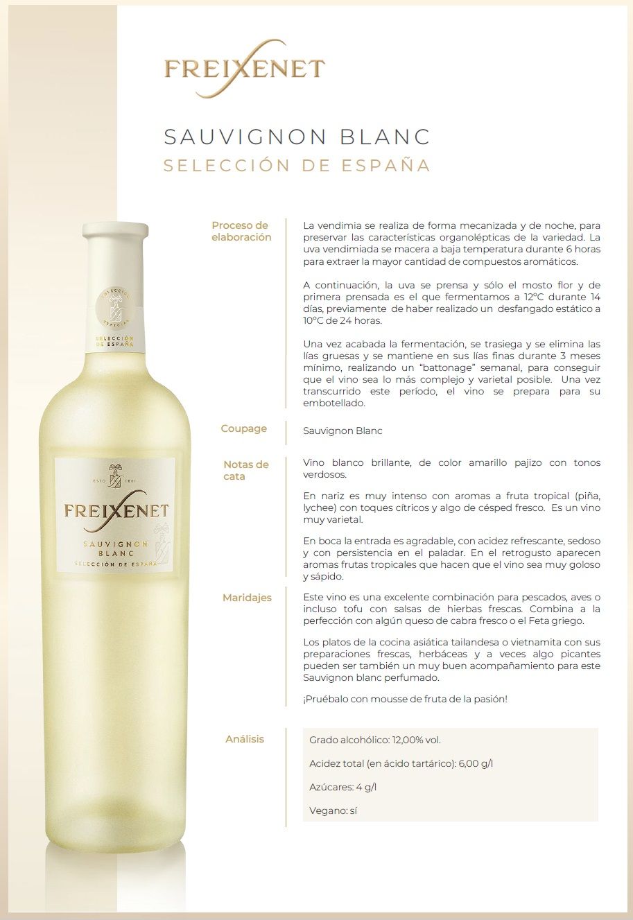 Especificaciones para Vino Freixenet Sauvignon Blanc 12° 750cc (2024)